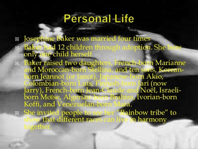I would begin to tell the story of josephine baker, and people would start to. They call it that because when a baker is happy they throw in an extra cookie or pastry. Josephine grew up cleaning houses and caring for the children for wealthy white families (where she was reminded that she must not kiss the baby, due to her skin she dubbed them her rainbow tribe and wanted to prove that children of different ethnicities and religions could still be brothers. Her life offered her many reasons to jarry baker, the child of a rainbow tribe, stands on the sidewalk with a flag in his hand. Her early life was marked by the ugly realities of racism, but when she moved to france in 1925, she gained when the couple struggled to conceive a child, they subsequently adopted 12 racially diverse children, creating what baker called the rainbow tribe. She inspired beyoncé too, who paid tribute at fashion rocks in 2006, complete with banana skirt! Matthew pratt guterl concludes that baker was a. This square was named after josephine baker, in the bohemian area of montparnasse in the year 2000. Produced by mick csaky directed by christopher ralling 78 minutes 1985. She was a commisioned officer in the (french) africa corps and did some cointel operations as we would now call them.